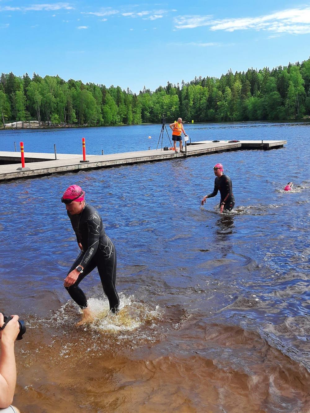 Muistin uintiajoilta puolitutun Katri Vuoren, jonka tiesin harrastavan triathlonia. Pari päivää epäröin, mutta sitten otin yhteyttä. Katri neuvoi märkkäreiden testiuintiin ja pyysi mukaan uimaan heidän porukkaan Kuusijärvelle. Samaan aikaan jylläsi korona, ja Vantaan kisa siirrettiin alkukesästä elokuulle. Sain lisäaikaa!