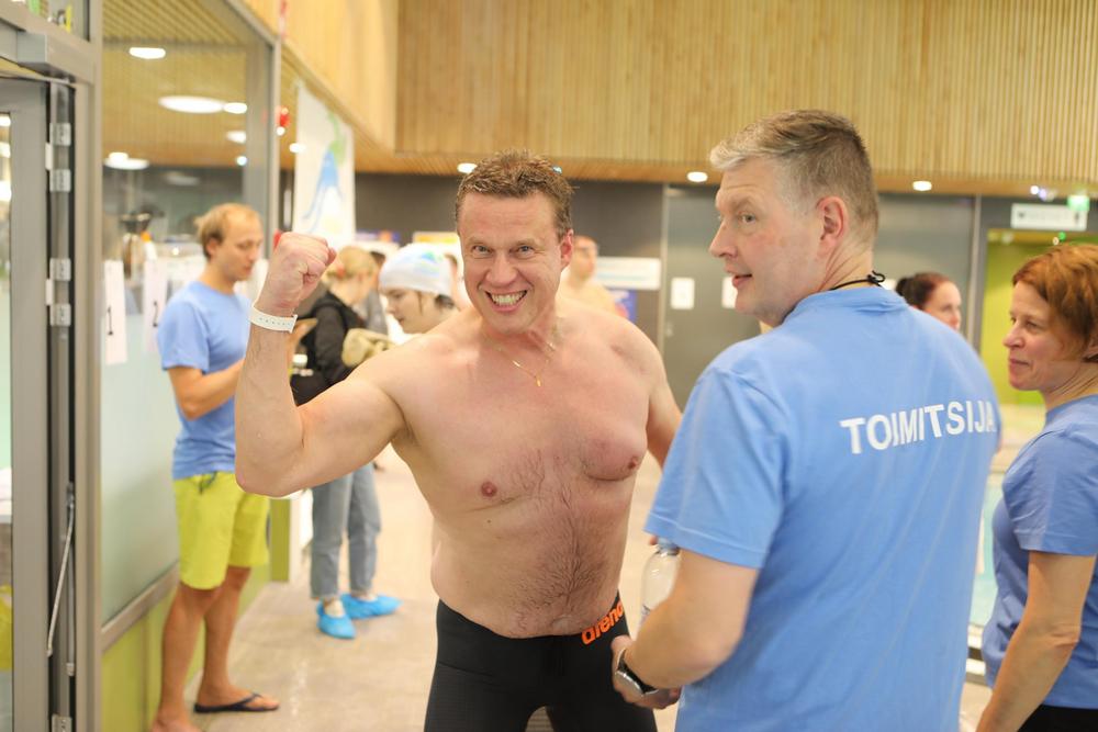 Juhlakilpailuihin osallistui kilpauimareiden lisäksi Keravan kaupungin liikuntapaikkapäällikkö Jaakko Haapala. Hän osoitti todellista liikuntatoimen johtajuutta kisaamalla lisenssittömien uimareiden sarjassa.