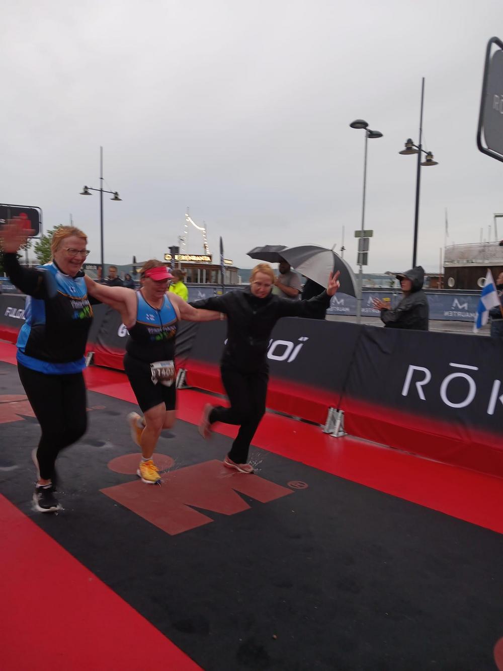 Sade alkoi, kun lähtö lähestyi. Tuuli yltyi ja teki uinnista haastavan aaltoineen. Erityistä haastetta oli sateesta johtuen pyöräosuudella, josta järjestäjätkin useaan otteeseen varoittivat. Juoksu oli vähän raikkaampaa pienessä sateessa. Kaikki siis yhtä märkiä ja kovista sääolosuhteista huolimatta nähtiin huikeita suorituksia varsinkin pyöräosuudella.