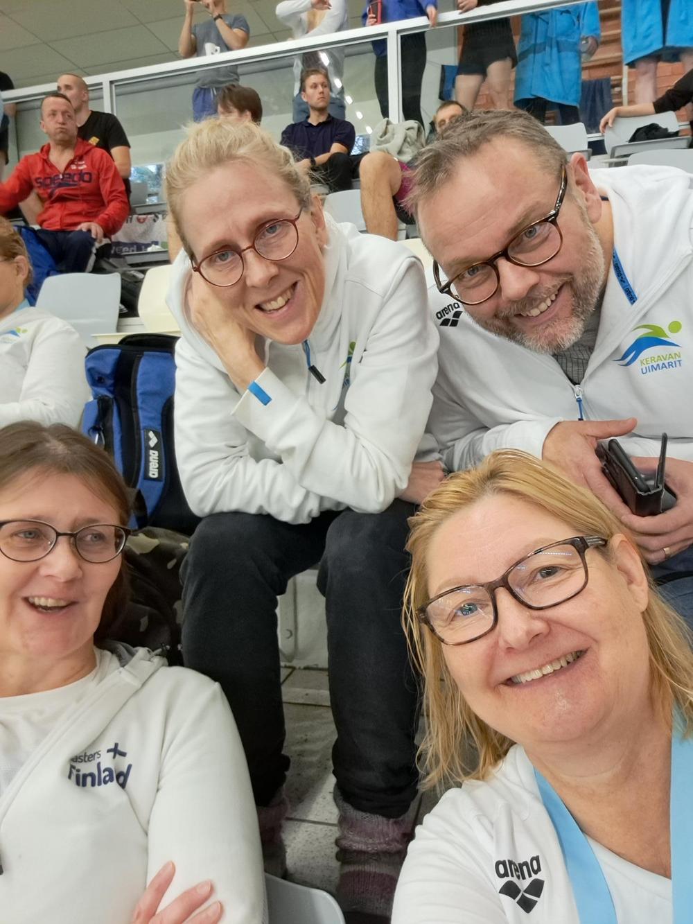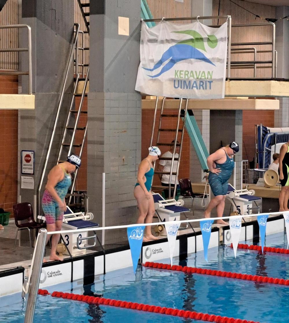 Kisoihin palasivat muutaman vuoden jälkeen myös Outi, Aki ja Karita. -Pikkuisen jännitti miten nämä kisat lähtee käyntiin, kun edellisistä kisoista on jo aikaa, mutta alkujännityksen jälkeen pääsi hyvin vauhtiin ja uinnit sujui odotetulla tavalla.
